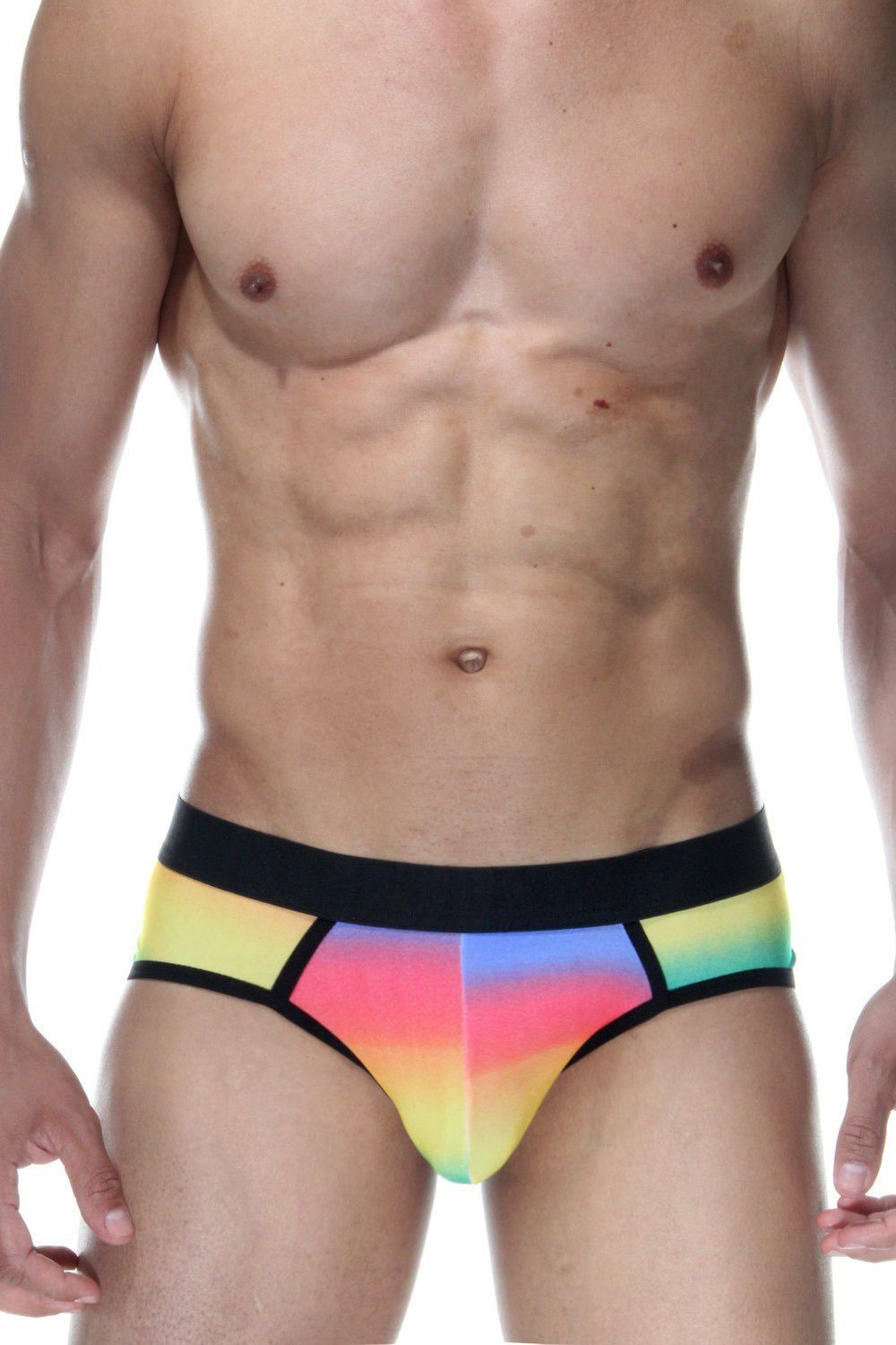 Разноцветные мужские трусы с пикантными вырезами сзади.