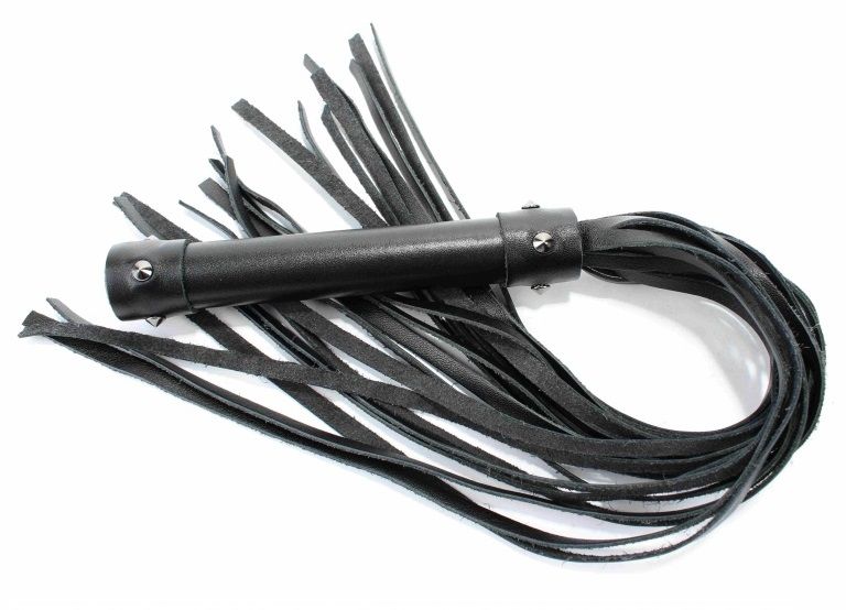 Плеть изготовлена из натуральной кожи, имеет 20 хвостов. Хвосты имеют вид лент. Украшена металлическими аксессуарами. Длина хвостов - 40 см.