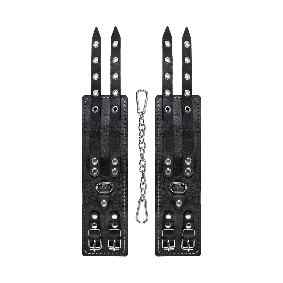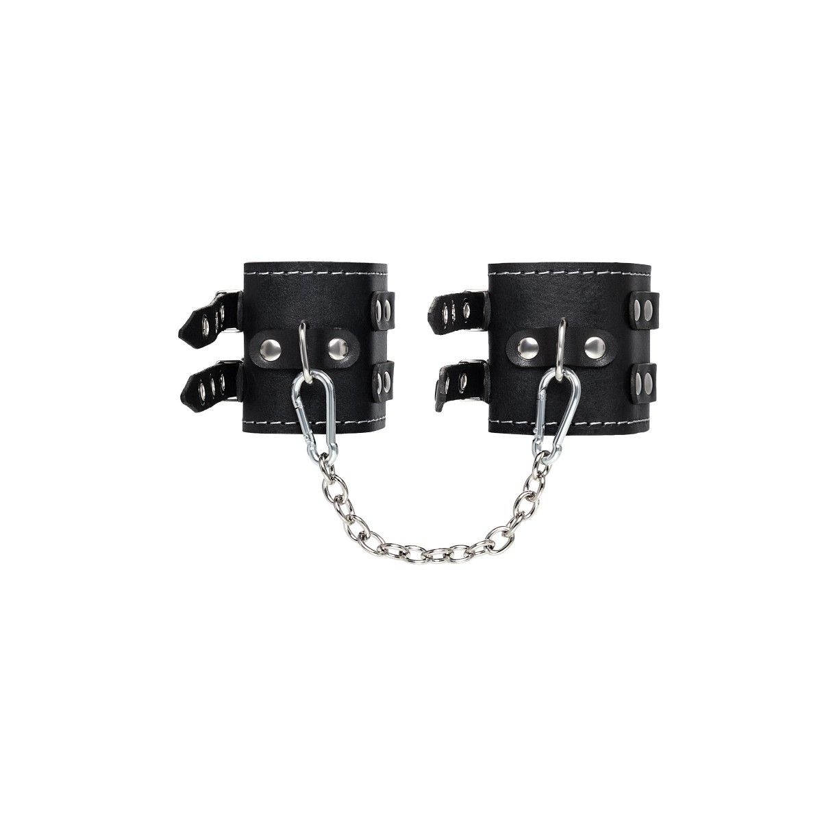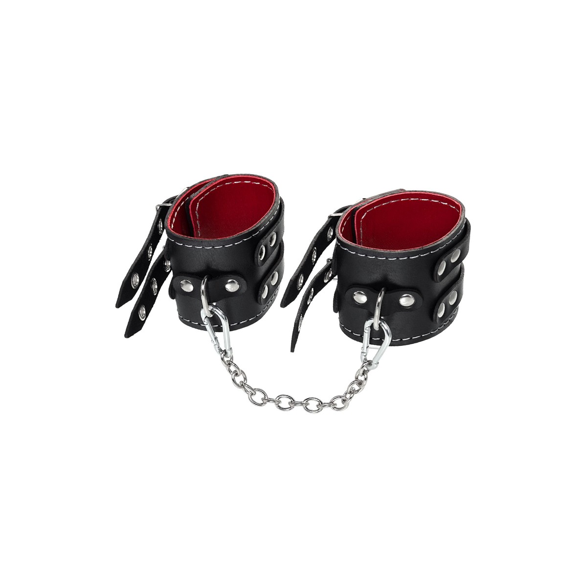 Эти кожаные оковы с двумя ремнями и красной подкладкой могут стать стильным аксессуаром, а могут послужить вашим целям по своему прямому назначению. Частичное обездвиживание и невозможность двигать руками или ногами дают вам полную власть над партнером – взрослые игры для взрослых. Наличие двух колец и карабинов, соединенных между собой металлической цепочкой, позволяет использовать изделие как раздельно – аксессуар-манжеты, так и как оковы для фиксации. К широким металлическим кольцам также можно присоединить и другие аксессуары при помощи карабинов. Благодаря универсальному размеру оковы могут использоваться и мужчинами, и женщинами. Размер легко регулируется с помощью металлических пряжек, органично вписывающихся в общий стиль. Длина манжет - 20 см, ширина - 7 см. Длина сцепки - 13 см.