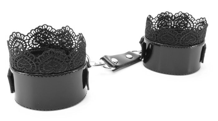 Изысканные чёрные наручники с кружевом.