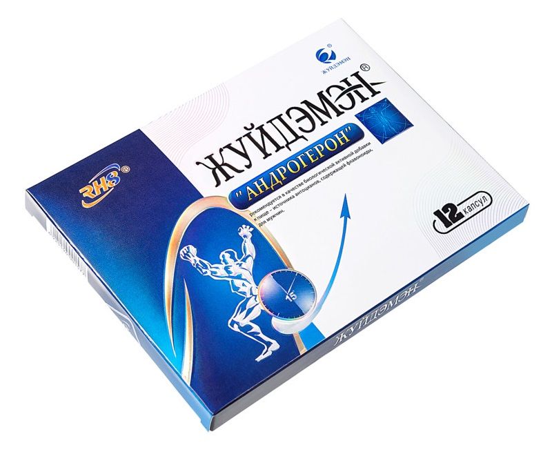 Андрогерон оказывает возбуждающий эффект, стимулирует кровообращение в сосудах полового органа, усиливает секрецию гормонов, посредством этого достигается быстрая и длительная эрекция. Содержит несколько десятков питательных элементов, активизирующих мужскую сексуальную энергию. Дополнительное действие андрогерона: укрепляет сердце, улучшает работу кровеносной системы, питает клетки почек, успокаивает нервные окончания, увлажняет легкие, останавливает кашель, облегчает дыхание, положительный эффект при усталости. Препарат совместим с алкоголем. Преимущества капсул «Андрогерон»: 1. Быстрый эффект - обычно через 15-30 минут после применения проявляется эффект Скорость восстановления эрекции после применения капсул «Андрогерон» выше, чем после химических препаратов, эрекция протекает гораздо сильнее, а период возбужденного состояния особенно длителен. Капсулы «Андрогерон» также питают и укрепляют организм. 2. Растительный состав препарата питает и оздоравливает организм. Он не содержит гормонов, химических компонентов, не противопоказан людям, употребляющим алкоголь. Капсулы «Андрогерон» не дают побочных эффектов, безопасны и надежны, в то же время они содержат питательные вещества, укрепляют организм и повышают иммунитет, подходят для применения людям с различными заболеваниями. 3. Длительный эффект - препарат оказывает лечебное действие в течение 3 - 5 дней. Лечебное воздействие капсул «Андрогерон» мягкое и длительное, они лечат как симптомы, так и причину заболевания, полностью мобилизуют потенциальные возможности организма, приводя к ярким ощущениям. Однократное применение обеспечивает длительный эффект. 4. Капсулы «Андрогерон» являются примером совершенного сочетания тысячелетней традиции китайской медицины и достижений современных высоких технологий. 5. Капсулы «Андрогерон» отличаются приемлемой ценой, их стоимость в 3 раза ниже стоимости аналогичных химических препаратов. Рекомендации по применению: рекомендуется в качестве БАД к пище, обладающей общеукрепляющим и мягким тонизирующим действием для мужчин. Препарат показан людям с пониженной потенцией и с преждевременной эякуляцией. Противопоказания: индивидуальная непереносимость компонентов БАД, повышенная нервная возбудимость, бессонница, повышенное артериальное давление, нарушение ритма сердечной деятельности, выраженный атеросклероз, прием в вечернее время. Перед применением рекомендуется проконсультироваться с врачом. В упаковке - 12 капсул (500 мг.).