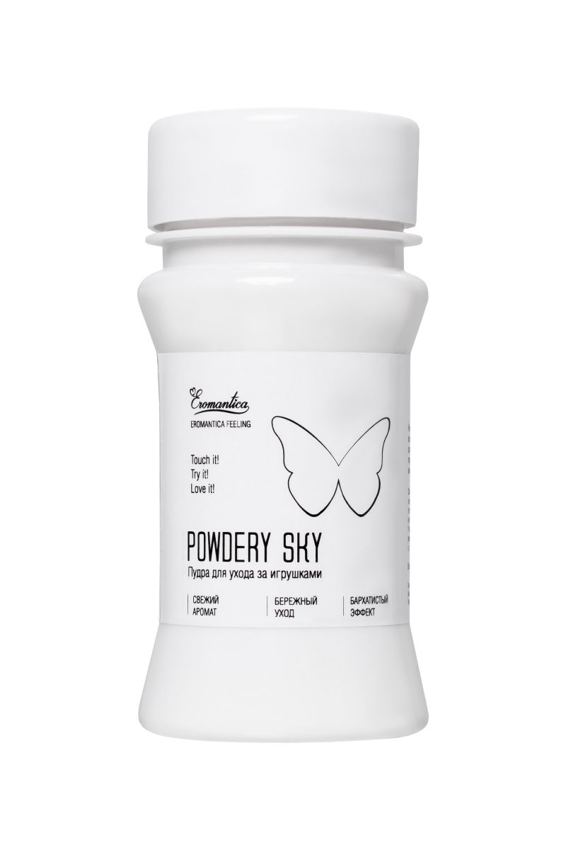 Невесомая пудра с ароматом мятной свежести для ухода за игрушками поможет надолго сохранить их первозданную эластичность и продлит срок использования! Легкое и равномерное распределение средства устранит эффект липкости поверхностей soft skin (киберкожа). Регулярное применение пудры обеспечит матовую бархатистость интимных аксессуаров и подарит комфортные ощущения, как при первом знакомстве! Ухаживайте с помощью Powdery Sky за любимыми девайсами после каждого применения и наслаждайтесь ее приятной заботой.