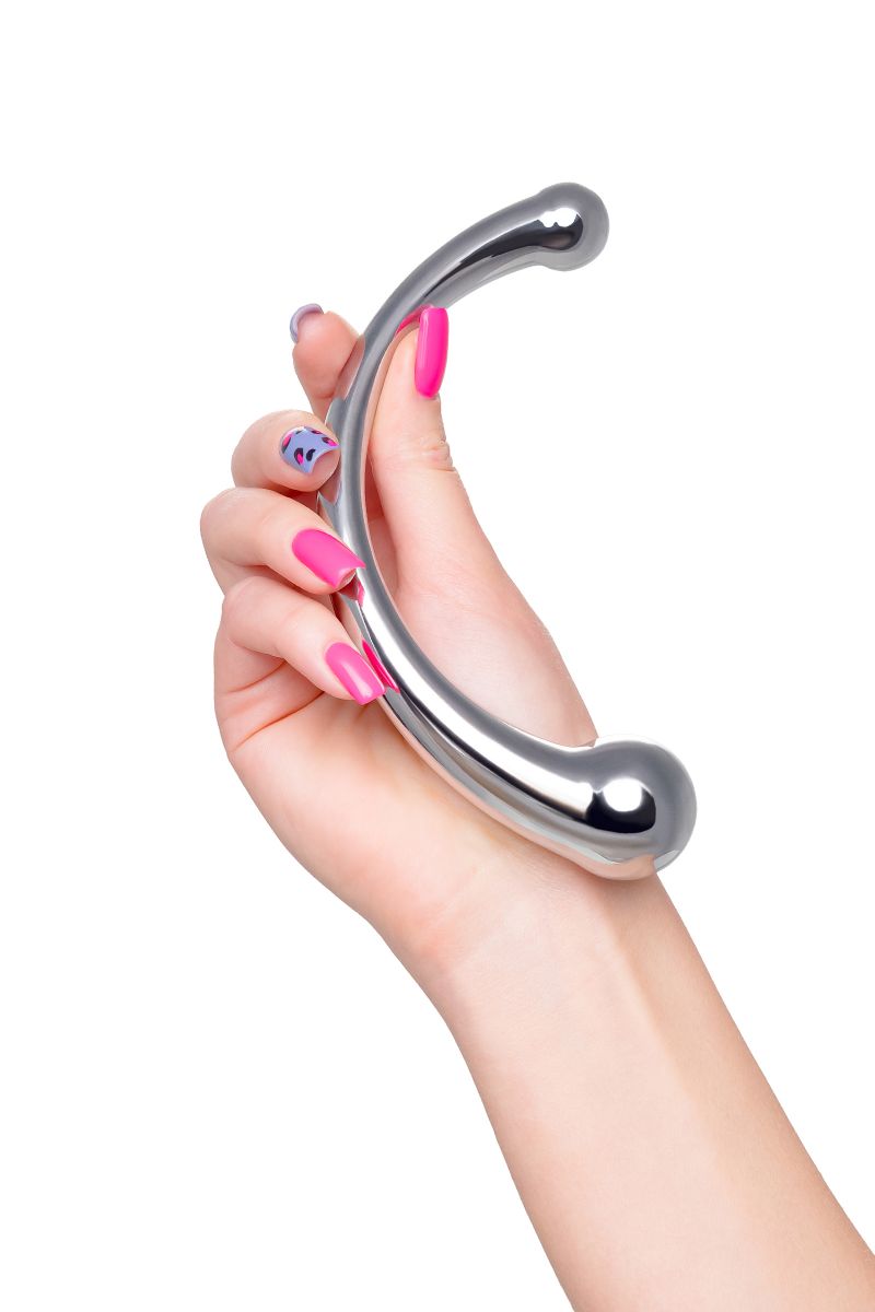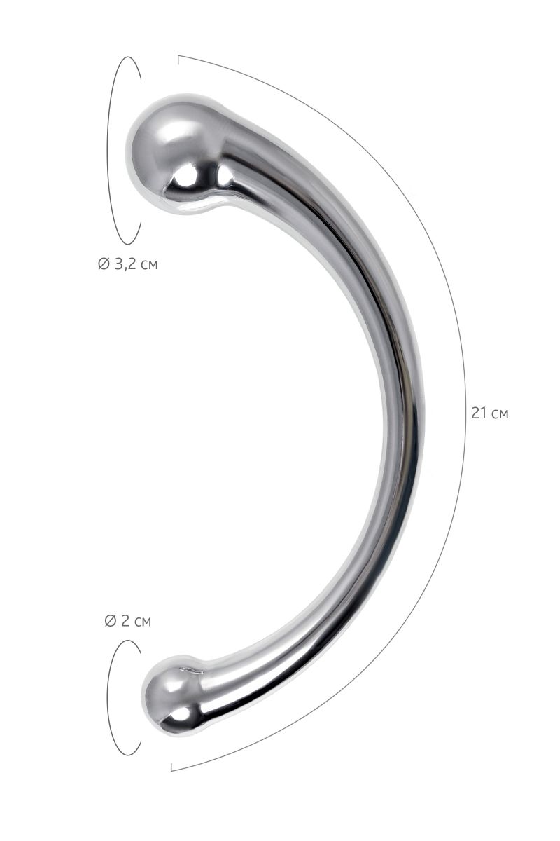 Металлический фаллоимитатор изогнутой формы с ярко выраженной головкой с обоих концов позволит испытать новые ощущения от чувственных экспериментов. Металл – один из самых безопасных и экологичных материалов, он прост в уходе, дружит со всеми видами смазок, а кроме того отлично поддается играм с температурами: для получения новых ощущений нагревайте или охлаждайте фаллоимитатор. Гладкость металла и плавность форм делают проникновение максимально комфортным. Приятная тяжесть добавит изюминку в сексуальную игру, что позволит получить еще больше наслаждения. Изогнутая форма удобно ложится в ладонь и вписывается как в сексуальную соло-игру, так и в парную. Диаметр меньшей головки - 2 см.